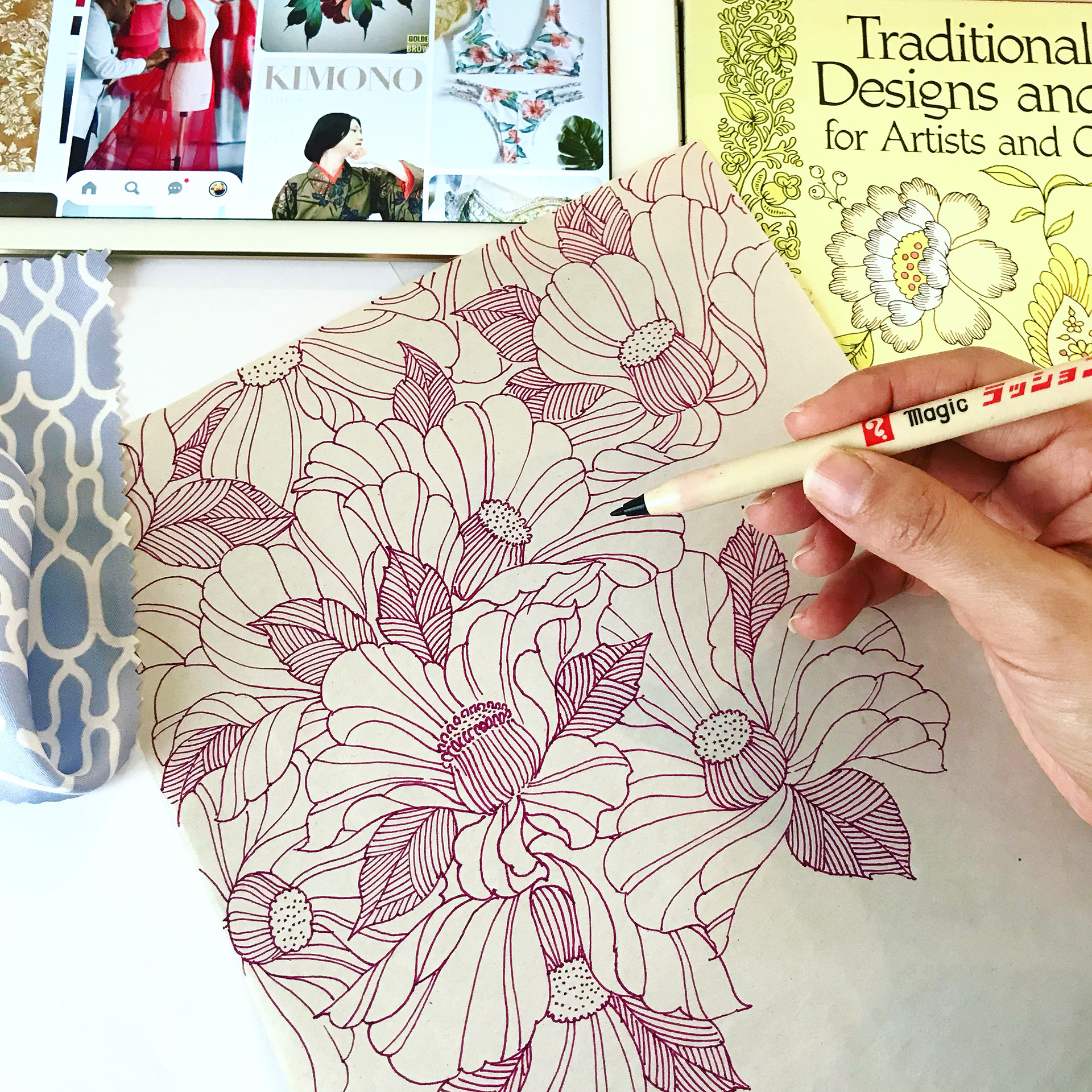 フリーランスデザイナーを始める前はアパレル会社でフランスのブランドを担当するデザイナーをしていました。その後、着物会社に振袖デザイナーとして勤めました。